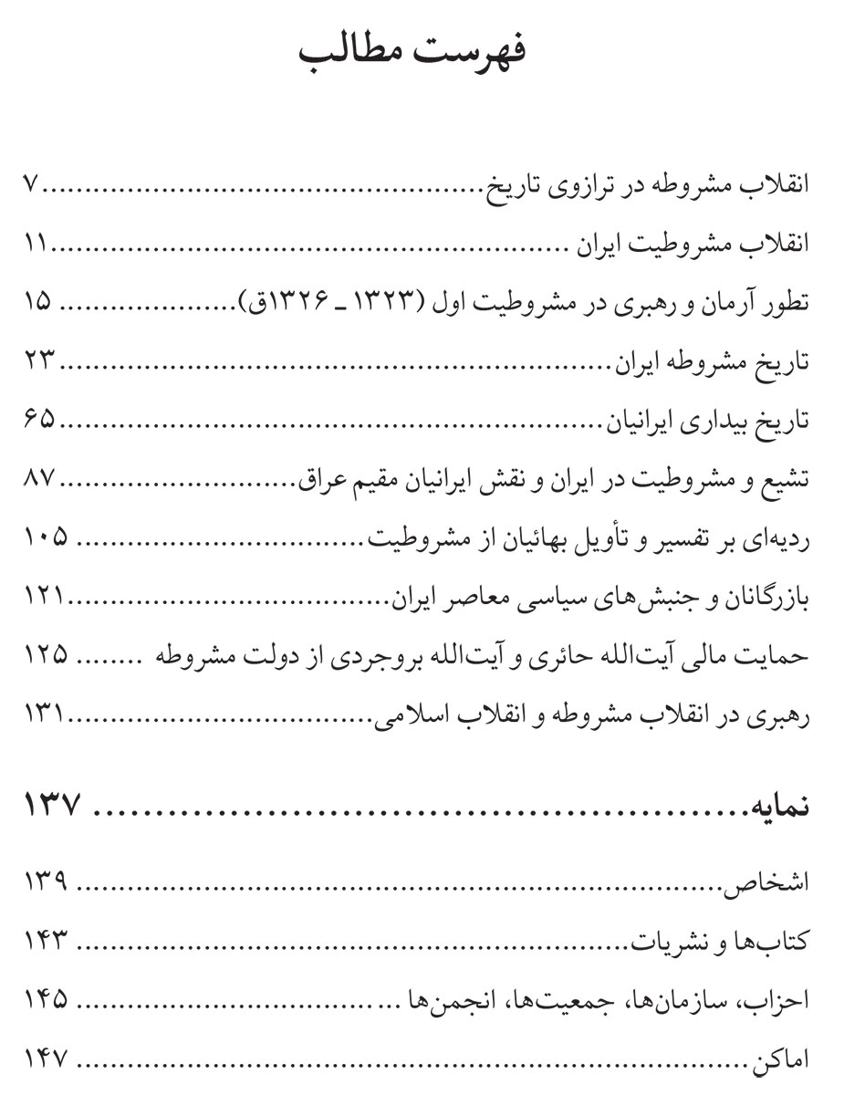 انقلاب مشروطه ایران نخستین انقلاب سیاسی ـ اجتماعی معاصر آسیا و بزرگترین رویداد سیاسی ـ اجتماعی تاریخ ایران تا پیش از انقلاب اسلامی است. در مدت بیش از یک قرنی که از انقلاب مشروطیت ایران میگذرد صدها کتاب و مقاله به زبان فارسی درباره آن نوشته یا ترجمه شده و صدها نشست و سخنرانی با محور آن برگزار گردیده و در آنها این رویداد مهم از منظرهای گوناگون بررسی شده است. با توجه به این نکته، محمدحسن رجبی (دوانی) کوشیده است در این کتاب، از بازگویی آنچه در این آثار مطرح شده اجتناب کند و تمرکز را بر بیان مجمل ظرفیتها و دستاوردهای سیاسی ـ اجتماعی انقلاب مشروطه قرار دهد.