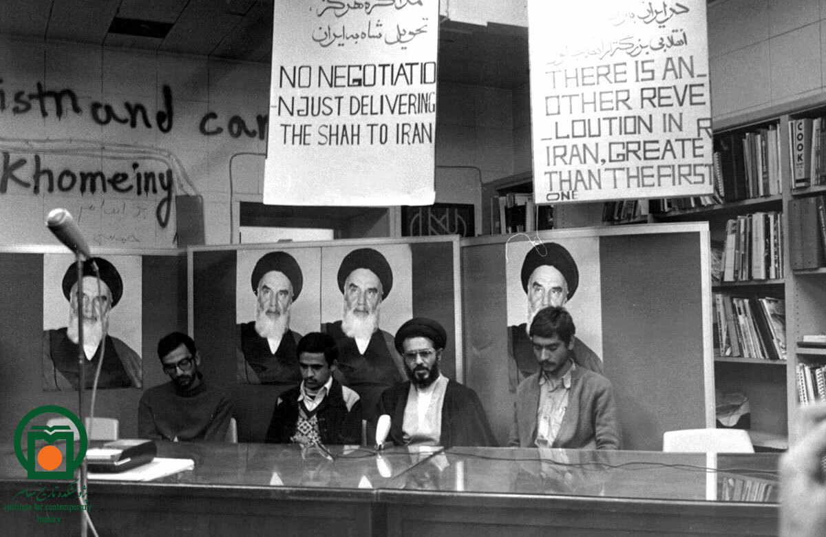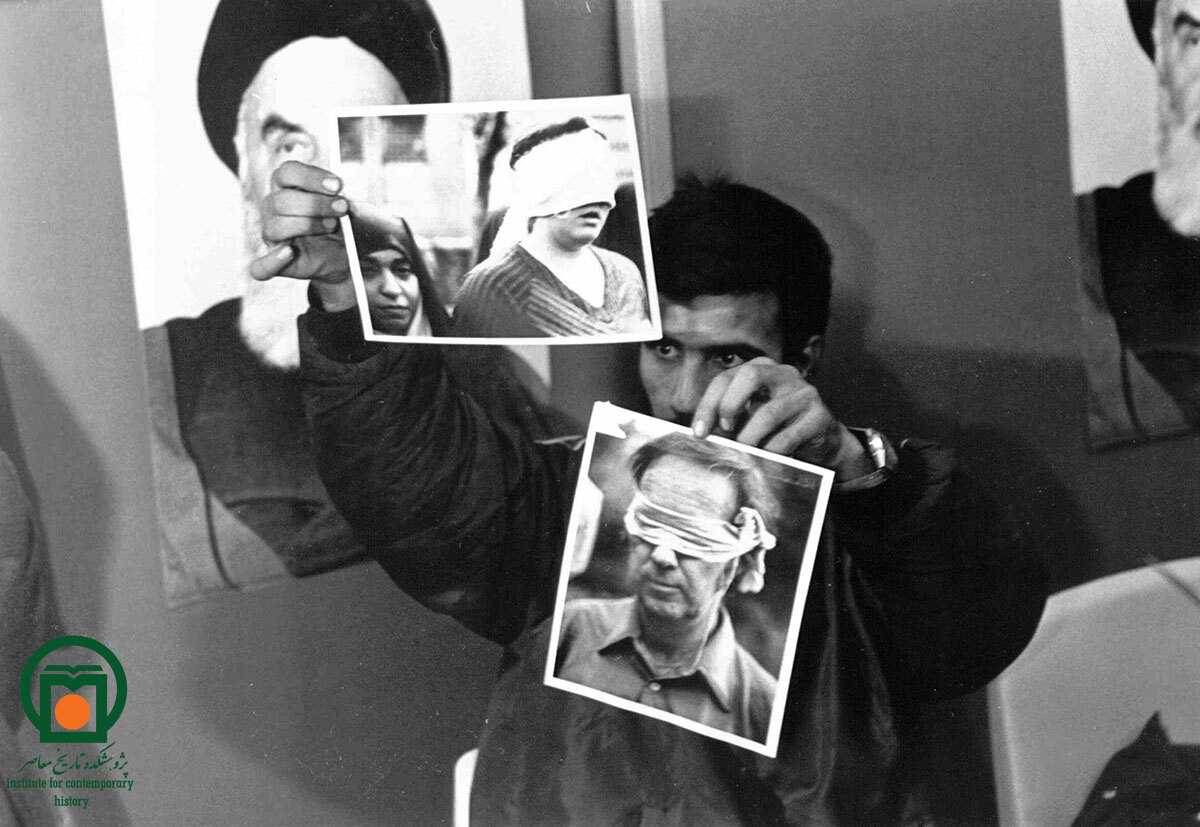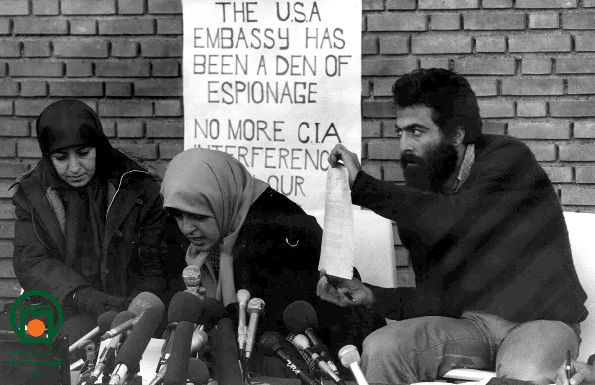 کنفرانس مطبوعاتی دانشجویان پیرو خط امام. ارائه تصویر گروگانهای دستگیرشده در لانه جاسوسی آمریکا