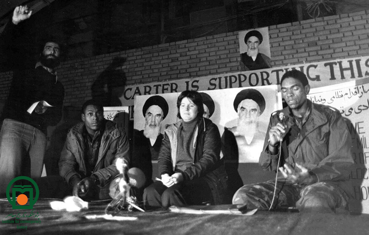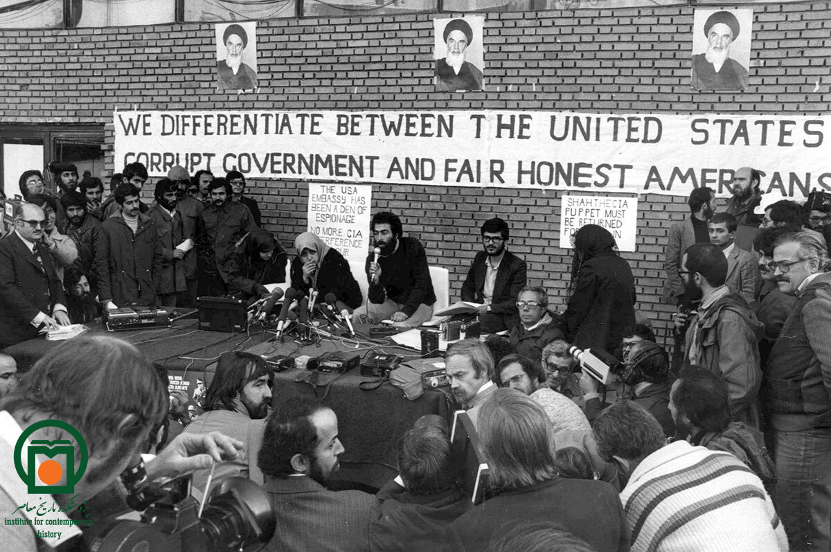 کنفرانس مطبوعاتی کارکنان زن و سیاهپوست سفارت سابق آمریکا، که به دستور امام خمینی آزاد شدند. در تصویر حسین شیخالاسلام دیده میشود