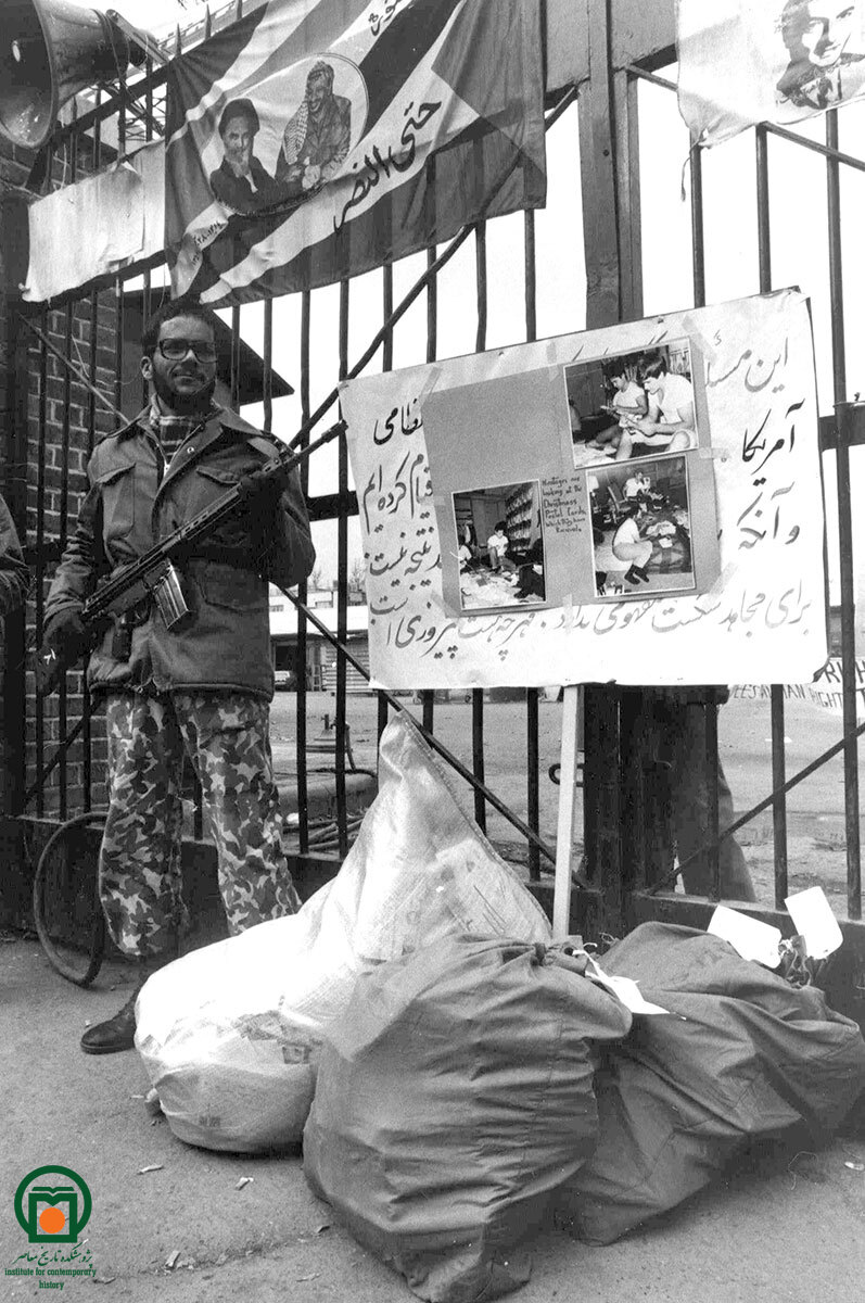 نمایی از درب ورودی سفارت سابق آمریکا پس از تسخیر توسط دانشجویان پیرو خط امام