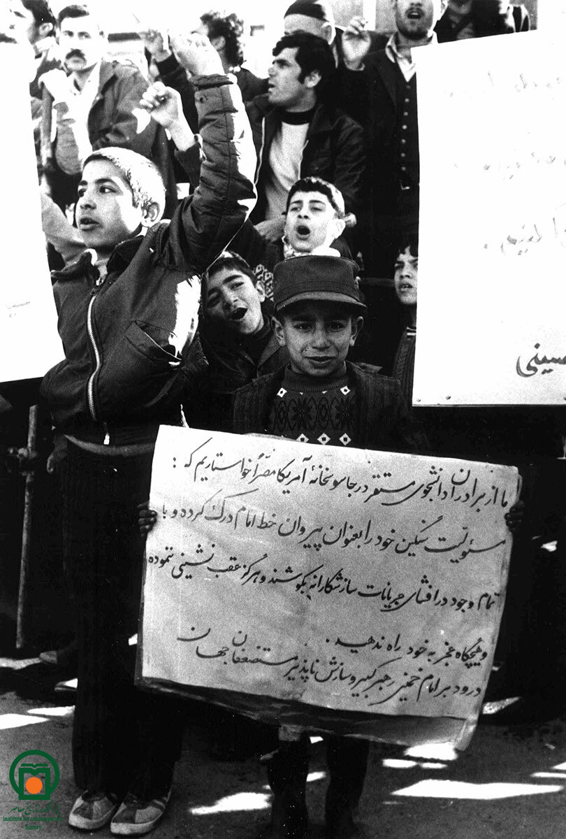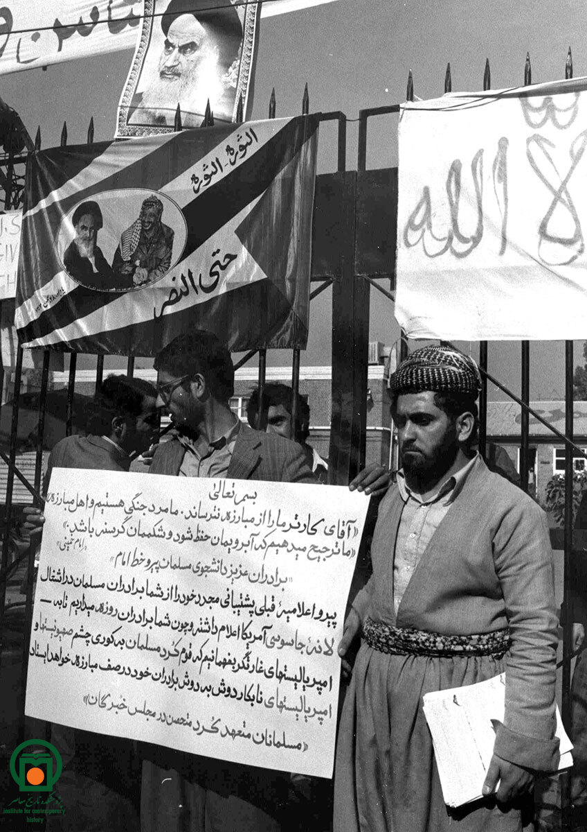حضور جمعی از کردهای مسلمان در برابر لانه جاسوسی آمریکا، برای حمایت از دانشجویان پیرو خط امام