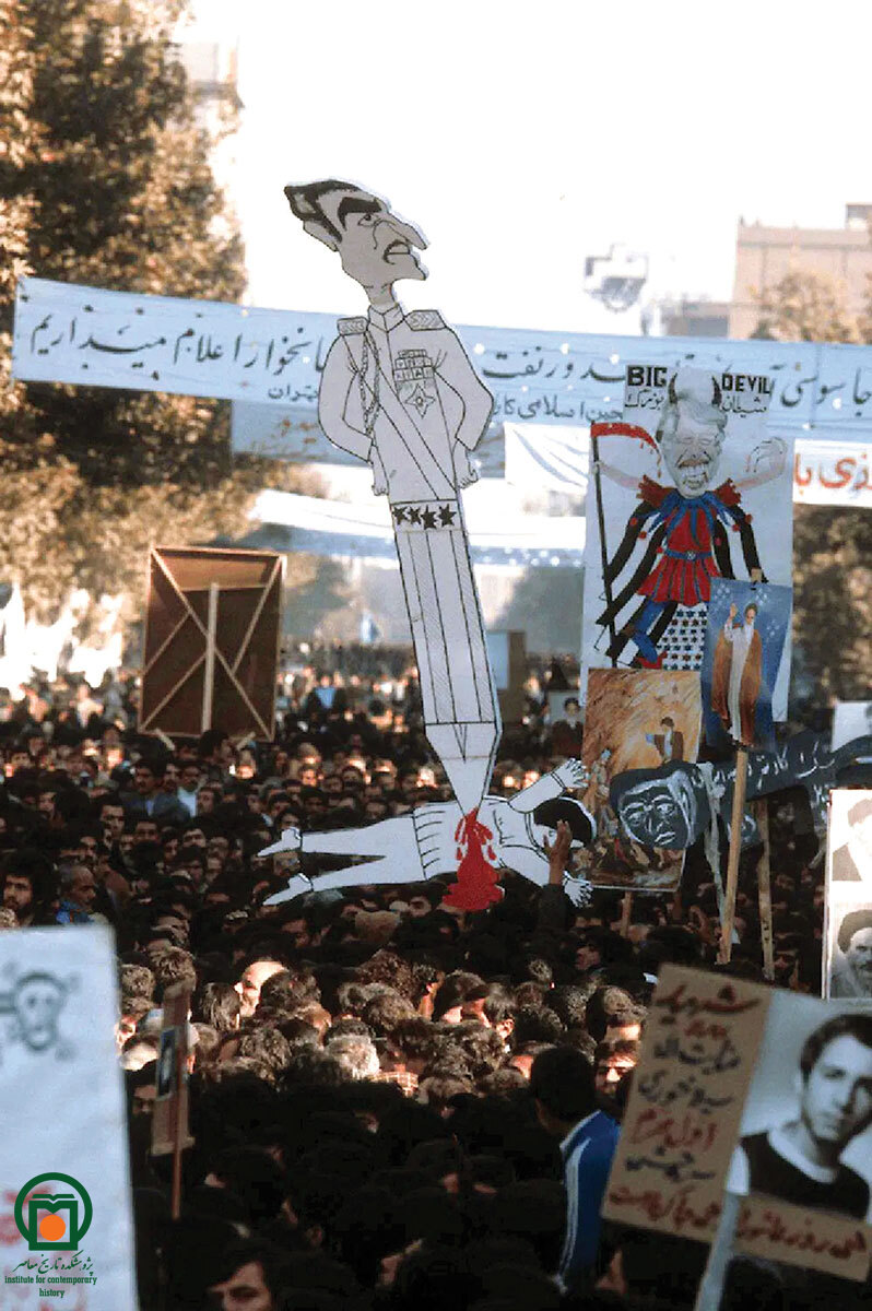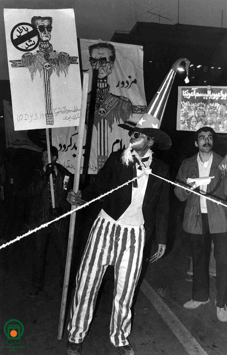 نمایی از اجرای تئاتر خیابانی در برابر لانه جاسوسی آمریکا، در حمایت از دانشجویان پیرو خط امام