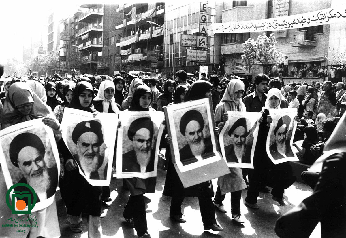 نمایی از تجمعات دانشآموزی در برابر لانه جاسوسی آمریکا، در حمایت از دانشجویان پیرو خط امام