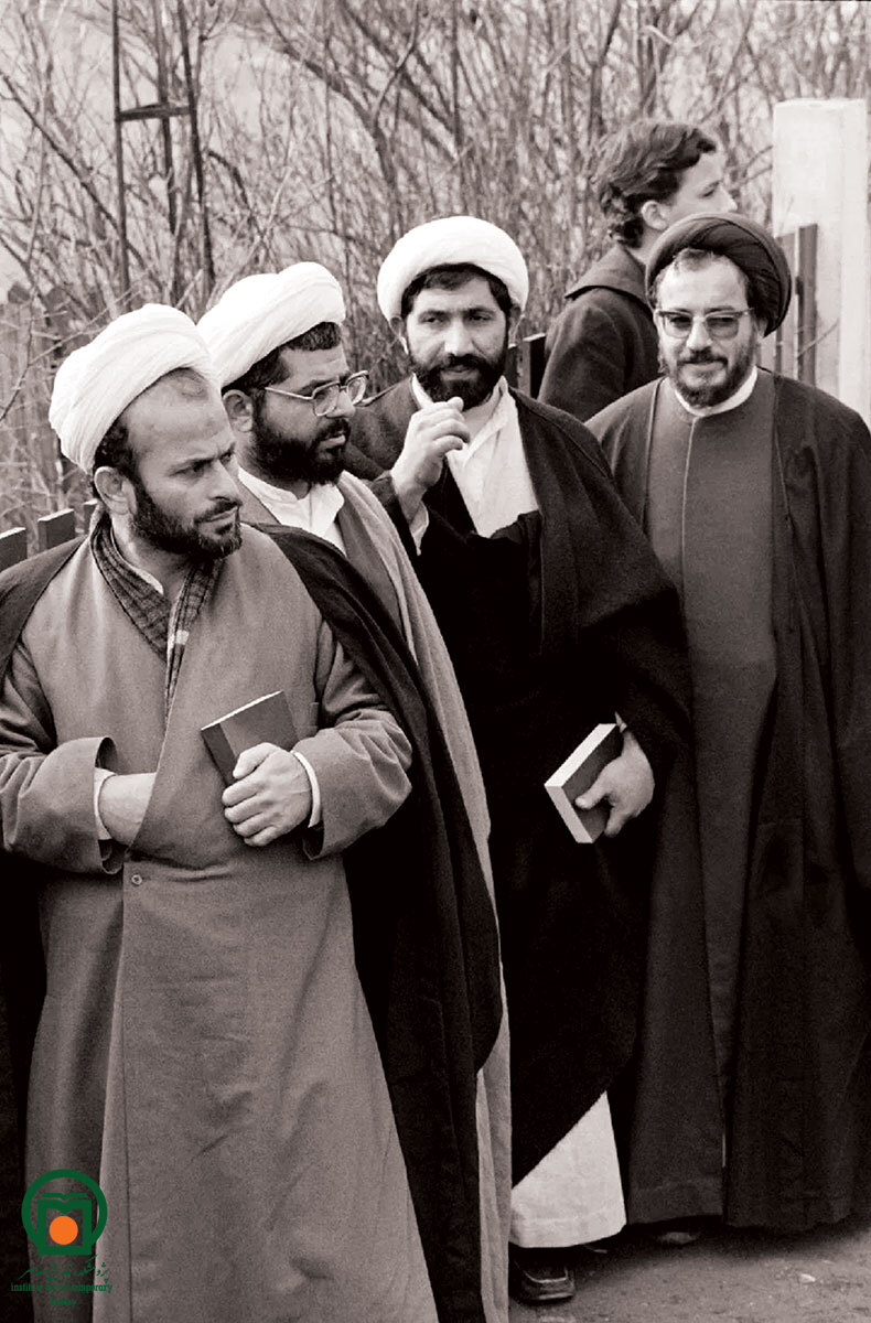 زندهیاد حجتالاسلام والمسلمین جعفر شجونی در کنار چند تن از روحانیون مبارز. در تصویر آیتالله محمدرضا ناصری امام جمعه کنونی یزد نیز دیده میشود (نوفل لوشاتو؛ 1357)