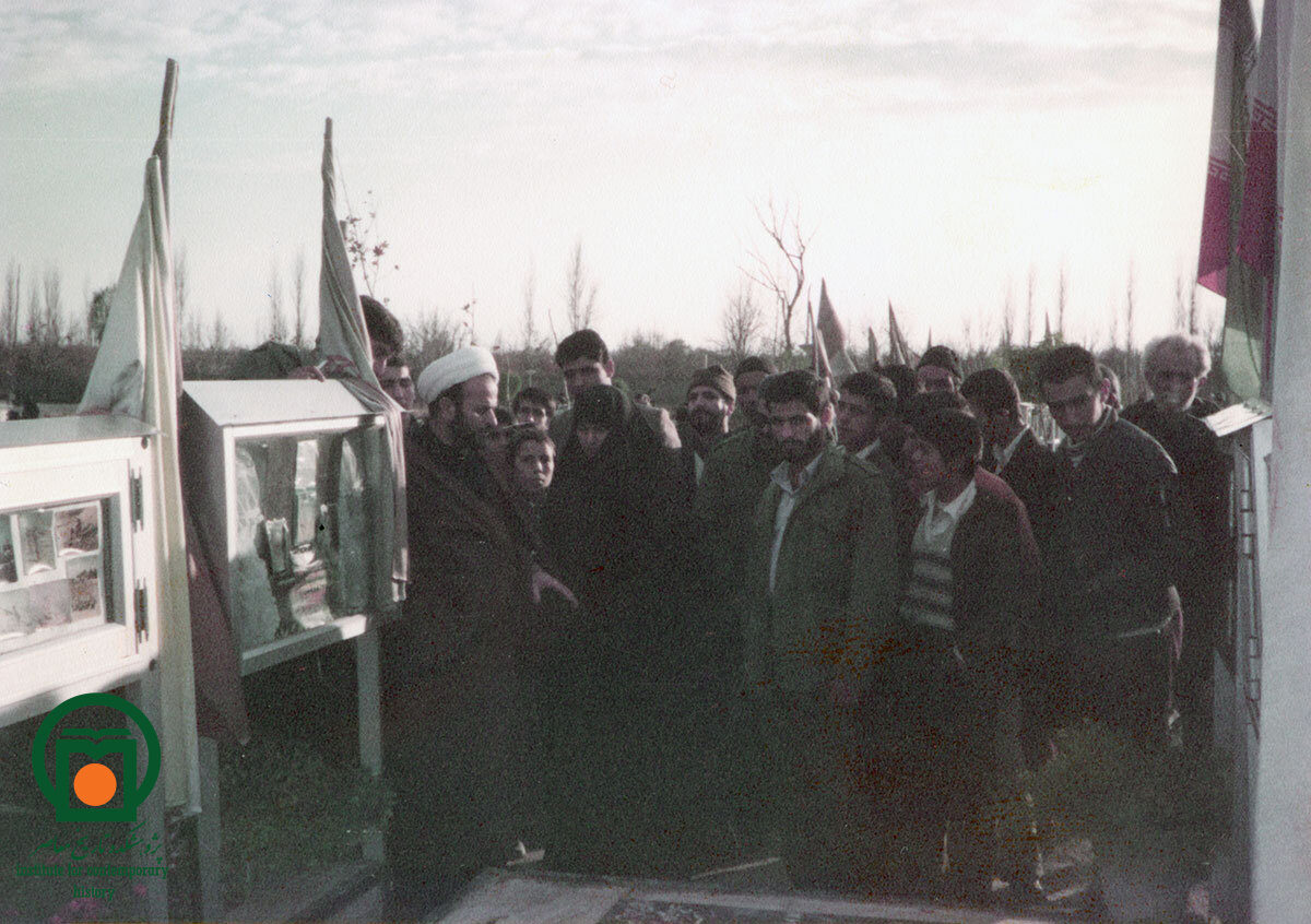 حضور زندهیاد حجتالاسلام والمسلمین جعفر شجونی در گلزار شهدای کرج (سال 1363)