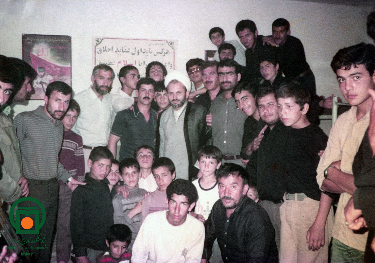 زندهیاد حجتالاسلام والمسلمین جعفر شجونی در بازدید از اردوگاه کار مهاجرین عراقی (کرج؛ 5 فروردین 1361)