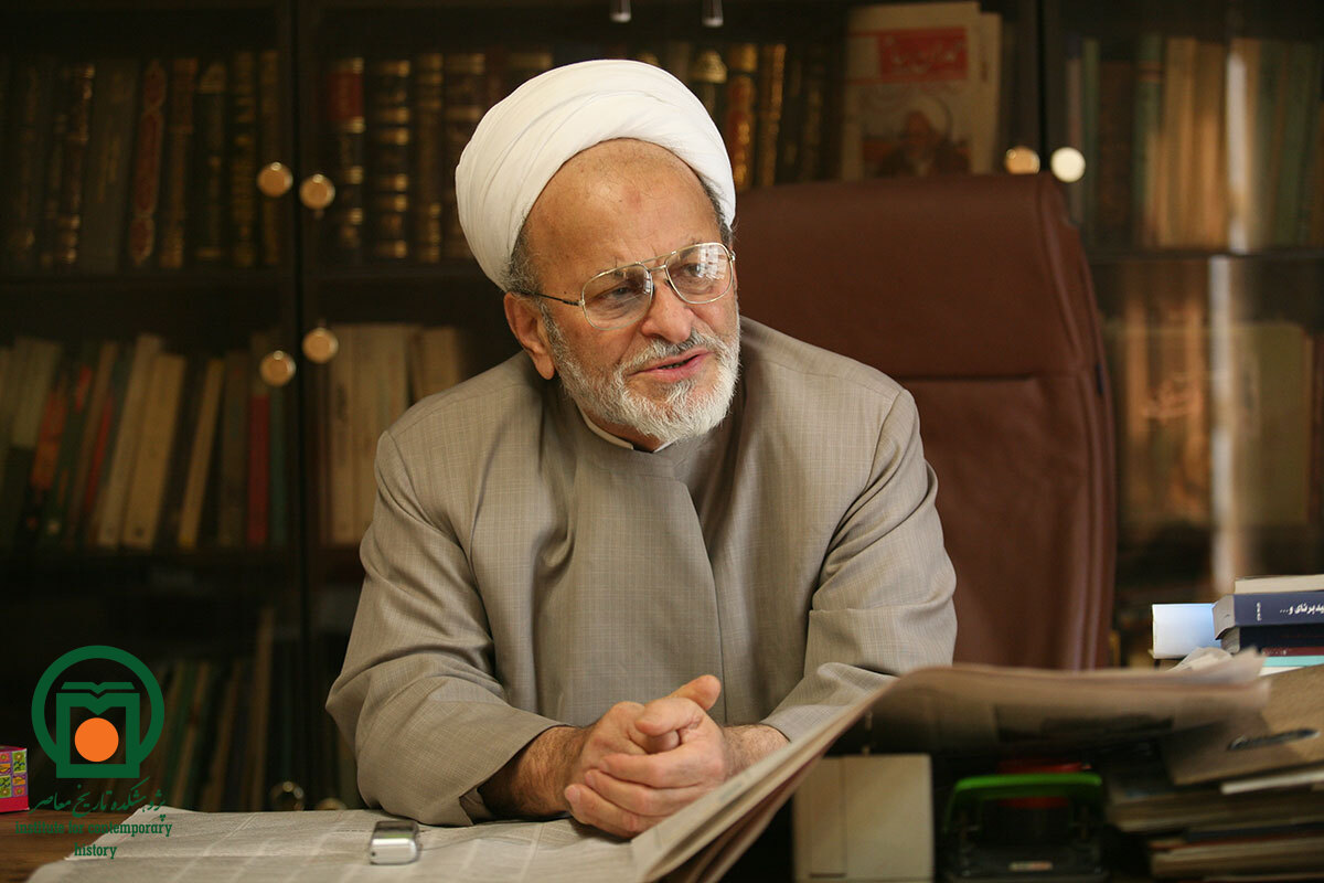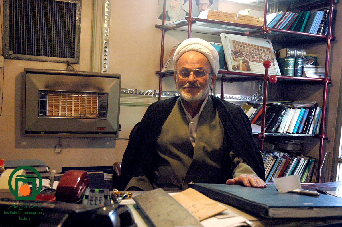 زندهیاد حجتالاسلام والمسلمین جعفر شجونی در حاشیه یک گفتوشنود مطبوعاتی در دفترِ کارِ خویش (سال 1385)