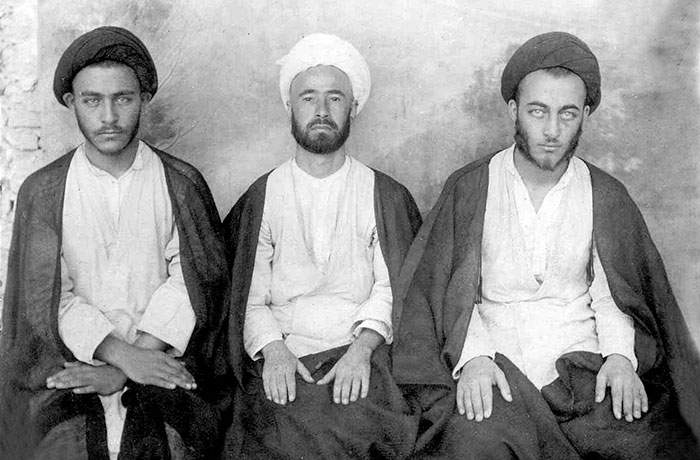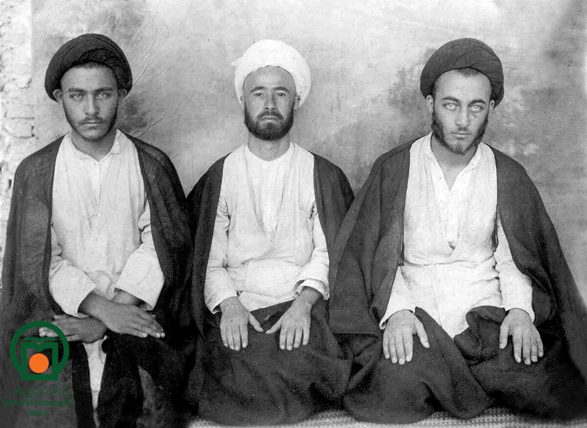 از راست: زندهیادان علامه سیدمحمدحسین طباطبائی، آیتالله حاج میرزا علیاکبر مرندی و آیتالله سیدمحمدحسن الهی طباطبائی، در دوره جوانی