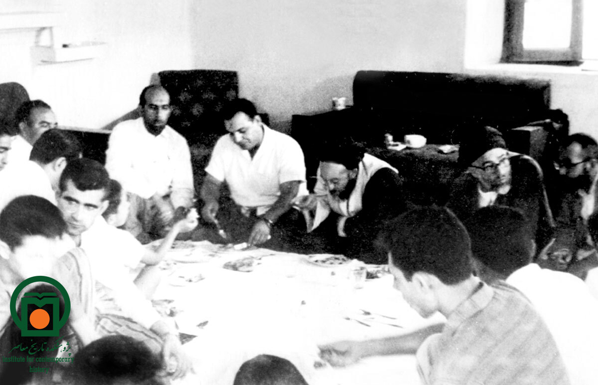 زندهیاد علامه سیدمحمدحسین طباطبائی، در کنار آیتالله سیدمحمود طالقانی و جمعی از اعضای انجمن اسلامی مهندسین (منطقه درکه تهران؛ سال 1339)