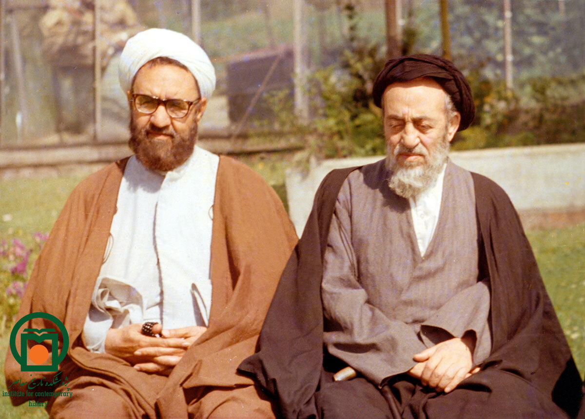 زندهیاد علامه سیدمحمدحسین طباطبائی در کنار شهید آیتالله مرتضی مطهری، در سفر استعلاجی (منچستر انگلستان؛ سال 1356)