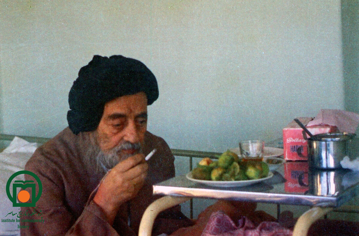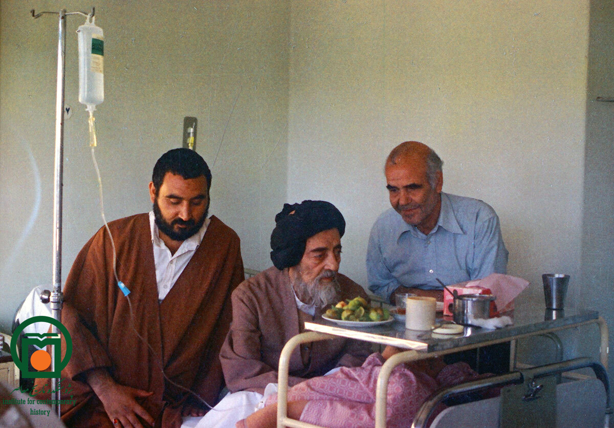 زندهیاد علامه سیدمحمدحسین طباطبائی در دوران بستری شدن در بیمارستان، در واپسین ماههای حیات (قم؛ سال 1360)