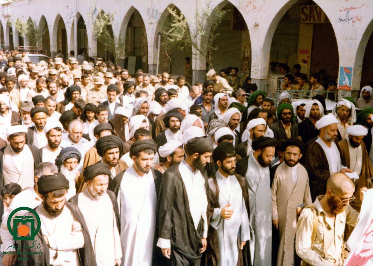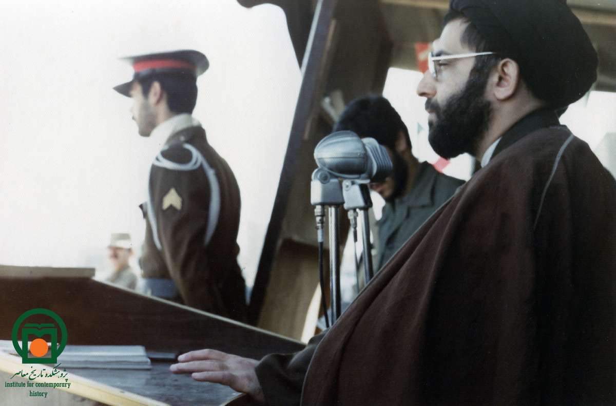 زندهیاد آیتالله حاج سیدعلی شفیعی در حاشیه مراسم تشییع پیکر شهید دکتر مصطفی چمران (اهواز؛ تیر 1360)